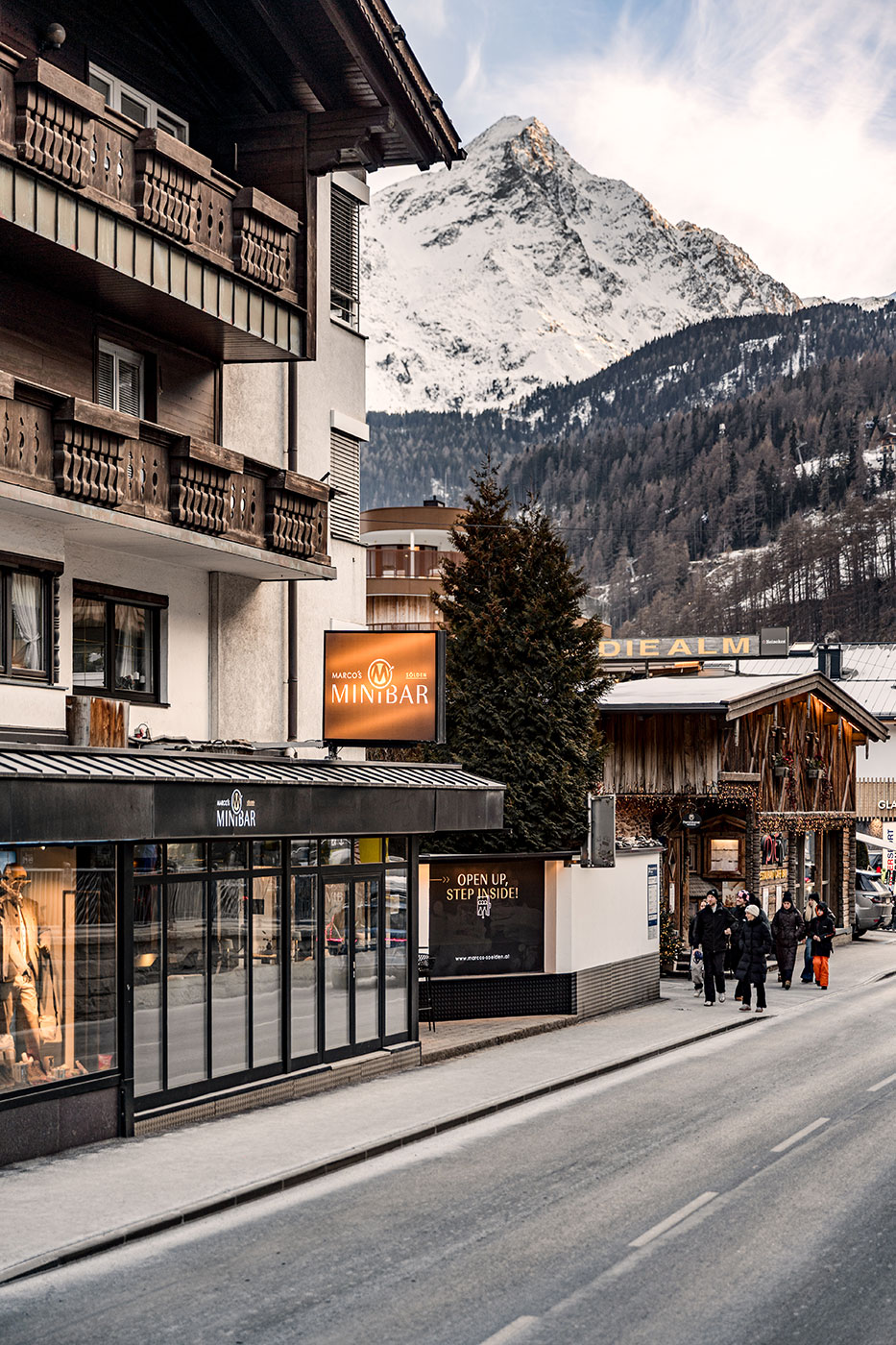 Unsere Marco’s Minibar findest du schräg gegenüber vom Marco’s in der DORFSTRASSE 15 in Sölden